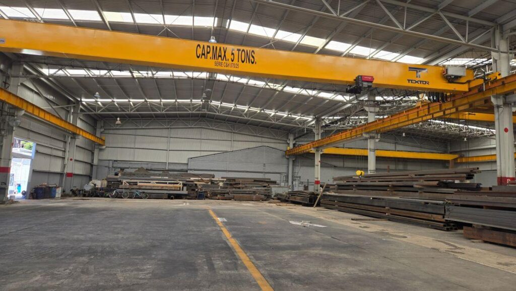 - Dos grúas con capacidad de 5 toneladas cada una